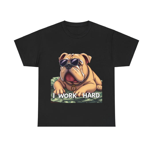 Awesome "I Work Hard" English Bulldog- Exclusive T-Shirt